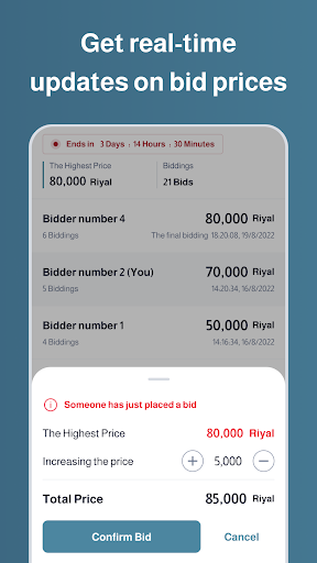 • Ability to activate notifications covering all stages of the auction to keep users well informed