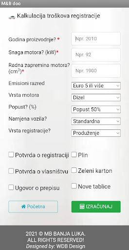 Na veoma jednostavan način izračunajte iznos auto osiguranja za Vaše putničko vozilo, motocikl, teretno ili priključno vozilo. Još jednostavnije zakažite Vaš tehnički pregled. Sve na jednom mjestu! Vaš M&B doo Banja Luka!