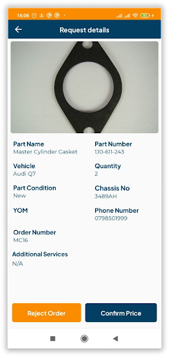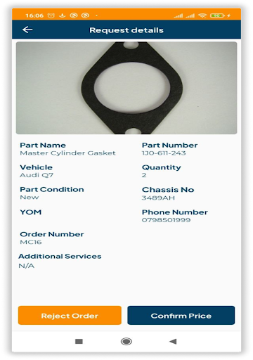 • The orders placed reach the Spare Parts Dealers with all the information of the car including: Vehicle make and model, Chassis number, year of manufacture of the car, Spare part Number, Image of the spare part being ordered thereby enhancing business delivery several folds.