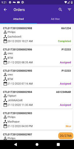 4) App has option Vehicle List, Driver List, and Partner List to get the list of the registered vehicle under this Field Officer.