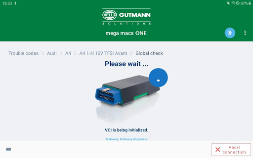 After concluding the licence agreement with Hella Gutmann, you will receive the Bluetooth VCI, which enables your mega macs ONE to communicate with the vehicle in question. The mega macs diagnostic software will also be made available for you to download. Once it has been installed on your tablet or notebook, you can use it on an unlimited basis – and even transfer it if you buy a new device.