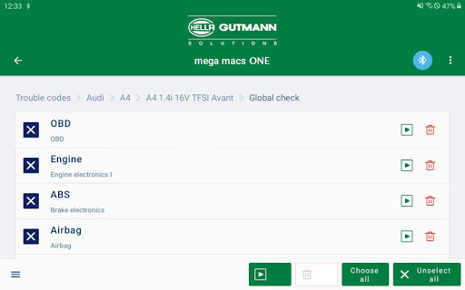 mega macs ONE provides the same range of diagnostic functions as conventional mega macs diagnostic devices. These range from displaying the OBD interface in the vehicle, reading/deleting trouble codes, resetting service intervals, parameter depictions (up to 16 at the same time), basic settings and actuator tests to the option of writing to the ECU via PassThru.