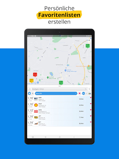 With the free app mehr-tanken you can quickly find the cheapest gas station for refueling in your area. As an official partner of the Markttransparenzstelle für Kraftstoff mehr-tanken provides live fuel prices, forecasts and a recommendation based on rising or falling liter prices.