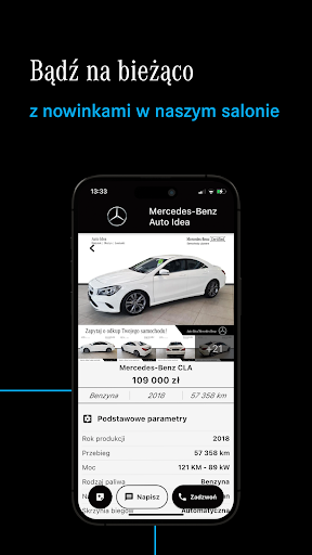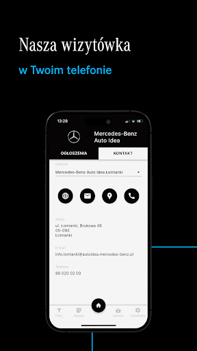Dzięki aplikacji Mercedes Benz Auto Idea możesz być na bieżąco z ofertą autoryzowanego dealera marki Mercedes. Powiadomienia push będą na bieżąco przypominać Ci o nowościach w palecie naszych towarów. Aplikacja ułatwi Ci także kontakt z naszymi punktami. Filtry w aplikacji pozwolą Ci na komfortowe przeglądanie samochodów dostępnych w naszych salonach