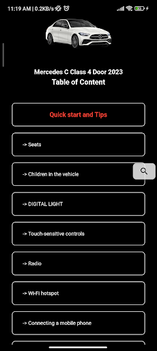 Mercedes Benz C Class User Manual, If you are an owner of an Mercedes Benz C Class, this app will help you a lot in your day-to-day use No need to go through a traditional paper book, handbook Glance through this digital version of Mercedes Benz C Class to resolve your issues and all the how-to’s, and nitty-gritty When and which oil to use and a lot more Download and refer to it as many times you want without the risk of losing it