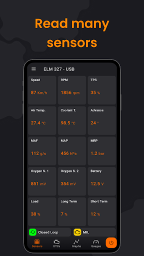 ✅ Get realtime readings from the vehicles sensors in a grid format (Customizable sensor grid and communication recordings available in PRO version).