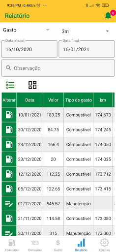 Saiba exatamente quanto você gasta com combustível e manutenção por mês, ano ou qualquer período de tempo.
