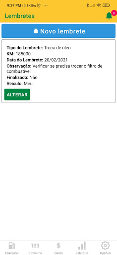 Adicione lembretes de trocas de óleos, revisões e manutenções.