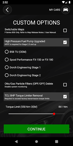 • Switchable Maps On-The-Fly – WORLD’S FIRST SOLUTION FOR BMW B58/B48 – through a simple combination of cruise control buttons you can quickly select between mapping, without the need to reflash vehicle! Gen 2 switchable maps, including all ethanol maps are under development.