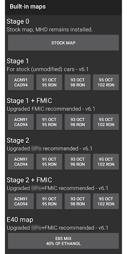 – Stage 1 pack. Eight maps: 4 fuel octane variants, stock / upgraded FMIC variants.