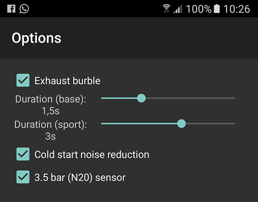 – Provides an ever growing list of handy options like PPK exhaust burble duration or cold start noise reduction.