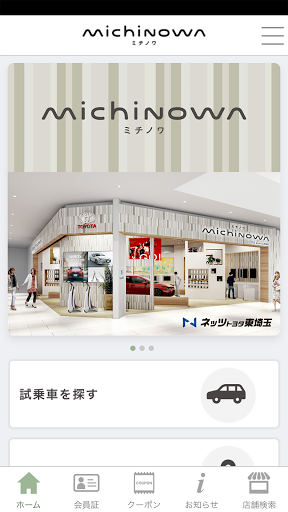 ネッツトヨタ東埼玉株式会社が運営するmichinowa(イオンモール川口)でご利用いただけるアプリです。
