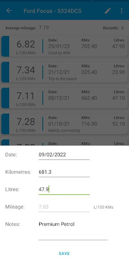 MileageTRAK – A simple and easy to use app to track the fuel consumption of your vehicles. You just have to add the distance traveled (partial odometer) and the fuel quantity, the app will calculate the consumption/mileage and will store it so you can look it up when needed.