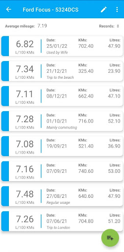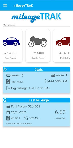 MileageTRAK will show you some statistics about your vehicles and their consumption, so you don’t loose track of any relevant information.