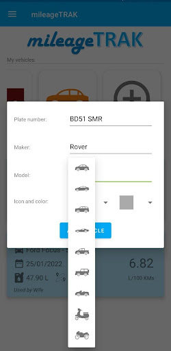 You can customize your vehicles, introducing their plate number, maker and model, as well as choosing a custom icon and color that suits your vehicle.