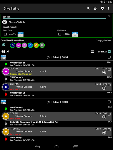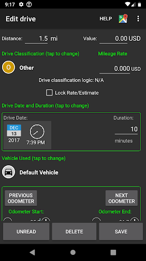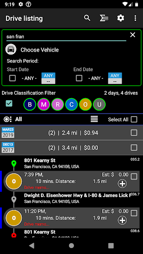 – 6 Drive categories: business, charity medical, other, relocation, unclassified