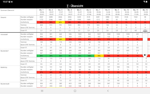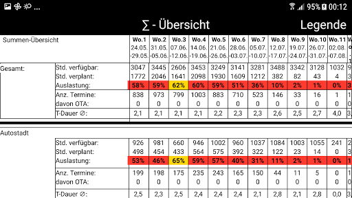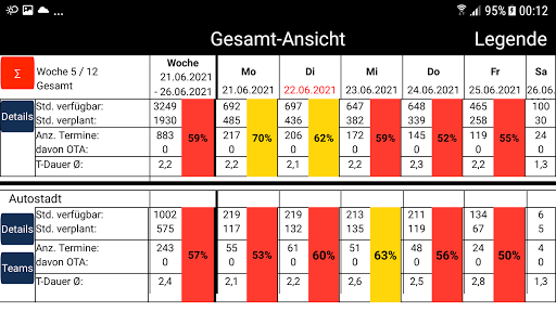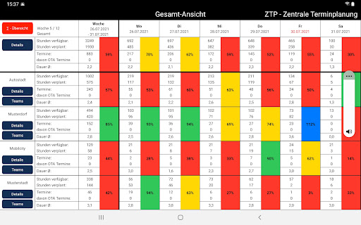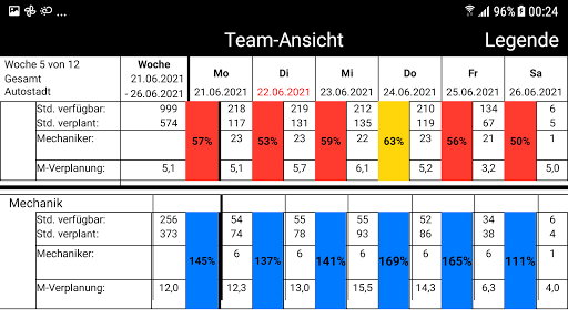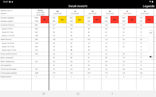 Die Daten über werden übersichtlich, komprimiert und permanent auf mobilen Endgeräten zur Verfügung gestellt. Ein Zeitfenster von 12 Wochen wird abgebildet (Wochen in die Vergangenheit, aktuelle Woche sowie Wochen in der Zukunft).