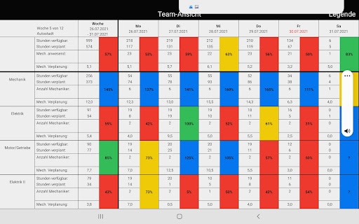 Verfügbare und verplante Kapazitäten, durchschnittliche Auslastung je Mechaniker sowie Serviceberater, Anzahl Termine, Anzahl Radwechseltermine, „Kunde wartet“ etc. Das System zeigt darüber hinaus Kapazitäts-Daten und Verplanungen einzelner Arbeitsgruppen in den Standorten an.