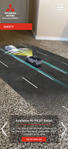 The Mitsubishi MiVision Augmented Reality (AR) App is an immersive way to experience Mitsubishi’s family of vehicles — anytime, anywhere! Simply drop a virtual Mitsubishi vehicle right into your own real-world environment and delve into its design, features, and technologies like never before.