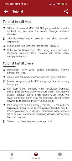 Aplikasi ini berisi mod untuk game BUSSID, dengan aplikasi ini Anda dapat mudah mendapatkan mod untuk BUSSID. diaplikasi ini tersedia mod beserta Livery secara lengkap dan mudah untuk di download tanpa safelink, ekstrak dan password.