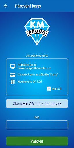 Aplikace dále umožňuje spárování ostatních karet vydaných spol. KM – PRONA, a.s. nebo KM – PRONA Trading, s.r.o. (CLIENT CARD, DRIVER CARD, GIFT CARD).