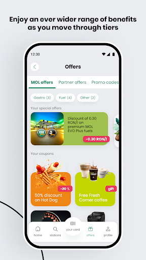 • Use the virtual loyalty card – Access the MOL Move digital card in the most convenient way: select the “Your Card” option in the app.