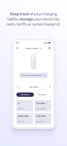 – Track your EV’s charge history, monitor its performance, and gain insights into your energy spending and usage patterns