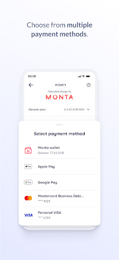– Add funds to your Monta Wallet or simply pay via credit card, Apple Pay, Google Pay, or MobilePay/Vipps (Nordics)