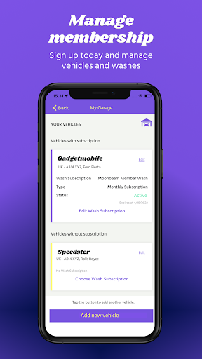 The Moonbeam Car Wash mobile app allows access to the Unlimited wash subscription, register and sign-up to our app to manage your wash subscription and contactless payment on a pay-per-wash basis. The Moonbeam app also allows you to redeem discounts and coupons and find your nearest Moonbeam Car Wash. The Moonbeam app allows easy access to account and payment information, while managing the vehicles through the My Garage feature.