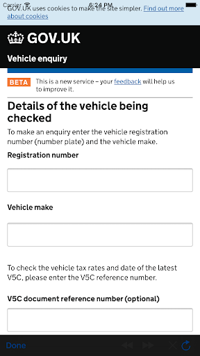 its just a click and enter the information to see your Vehicles MOT or Tax details. I built it just for myself but thought it may be handy to others too. Note this only works on UK currently registered cars ONLY.