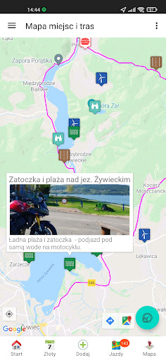 Po wejściu w zakładkę ciekawe miejsca i trasy pobierana jest Twoja aktualna pozycja, a następnie wyświetlane są najciekawsze miejsca i trasy w twojej okolicy. Przechodząc na kolejne strony wyświetlane są coraz dalsze miejsca oraz ich odległość od Twojej lokalizacji – można znaleźć miejscówkę na krótki lub dłuższy wypad motocyklowy.