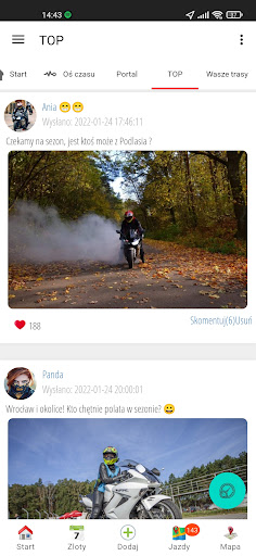 Szukasz motocyklistów do wspólnej jazdy na moto w Twojej okolicy. To wspaniale, bo ta aplikacja została po to stworzona. Wystarczy zmienić swój status na SZUKAM LUDZI DO JAZDY i inni ludzie w Twojej okolicy będą mogli zobaczyć Twój profil i napisać do Ciebie w aplikacji. Można też stworzyć wyjazdy motocyklowe lub grupy w danej lokalizacji, a inni mogą do nich dołączać i tam też ustawiać się na latanie.