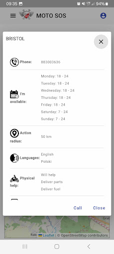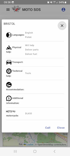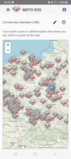 – IMPORTANT: A map of MOTO SOS group members is used in the application. You can find there the contact and offered help by a member of the group (group logo on the map) (information in polish – in future we will add english too