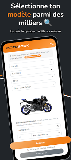 Que ta moto soit destinée à la route, à la piste ou au off-road, tu peux sélectionner l’unité d’usure la plus adaptée lors de l’ajout de ta moto dans ton atelier parmis ces trois possibilités : “KM – Kilomètres”, “JDR – Journées De Roulage”, “H – Heure d’utilisation”. Tu peux ajouter tes motos à l’aide d’une base de données constituée de plus de 4000 modèles. Si ton modèle n’est pas présent, tu as la possibilité de le créer de manière simple et rapide !