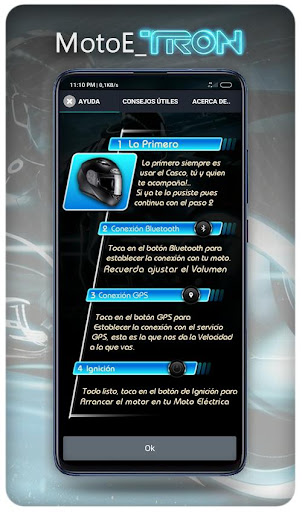 Esta App simula que tu Moto Eléctrica tiene MOTOR FUTURISTA AL ESTILO DE LA AFAMADA PELICULA ”TRON”… en ella se explica todo lo que tienes que hacer, es muy sencillo, la conectas vía Bluetooth con tu Moto (De esta forma se escucha por las bocinas de la moto) y Activas el GPS (UBICACION), de esa forma la App sabe a qué velocidad vas, a mayor velocidad ira emitiendo el sonido de motor acelerando de acuerdo a la velocidad que va, DANDO LA SENSACION DE QUE TU MOTO TIENE MOTOR FUTURISTA, ADEMAS DE BRINDAR MAYOR SEGURIDAD VIAL, YA QUE LOS PEATONES SIEMPRE TE ESCUCHARAN VENIR…