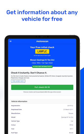 Our app allows you to run a free check on any UK registered vehicle. Get your FREE UK Car History Check instantly just by entering in the number plate.