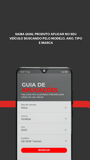 O aplicativo MotulExpert é um guia que reúne informações completas sobre todos os produtos disponíveis no catálogo da marca. Além disso, a seção “Guia de Aplicações” te ajuda a escolher o produto certo para o seu veículo com opções personalizadas, tendo informações como o modelo, marca, ano e versão do automóvel ou moto.