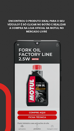 Além disso, a nova versão do app conta com a lista de Garagens Motul mais próximas, onde você pode encontrar nossos produtos oficiais em lojas e oficinas licenciadas. Também é possível acessar a loja oficial da Motul no Mercado Livre e comprar o produto desejado pelo app. Baixe agora!
