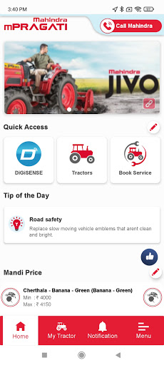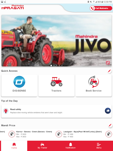 “Mahindra mPragati” app provides access to Mahindra Tractors and Farm Machinery customers to a wide range of product portfolios at their fingertips. Customers can now browse through their own tractor information, Digisense features(if available on their tractor), book a service appointment, locate the nearest dealer and service station and place fresh enquiries about Mahindra Tractor and Farm Machinery products. Available in seven languages, the app has a simple and easy interface.