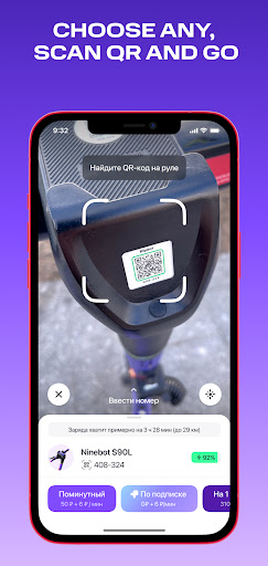 – Scan QR-code on the wheel, choose tariff plan and press “Start”