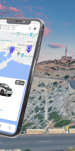 With Muvon you can rent an electric car hourly in Mallorca and pay only for the duration of your booking, starting from 7.2 € / hour. No additional costs: forget about paying the deposit or paying for refueling and parking. Download the Muvon Carsharing app and rent a car through your smartphone, with no queues nor waiting times. Register, book and access the car through the app.