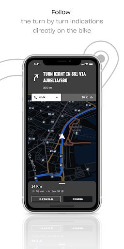 – Plan your next trip and navigate with turn-by-turn directions directly on your bike;