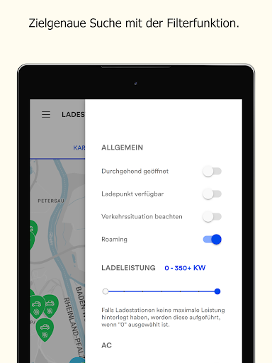 • Anzeige und Suche aller Ladepunkte im MVV-Netzwerk inkl. Standortpartner