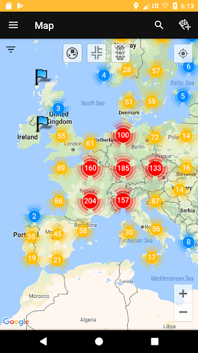 actual tracks from following countries are in the app: Germany, Austria, Netherlands, Belgium, France, Switzerland, Italy, Spain, Sweden, Denmark, Norway, Czech, Poland, Hungarian and Great Britain.