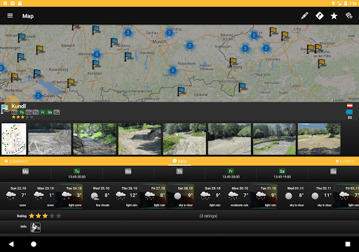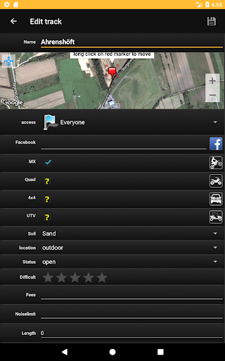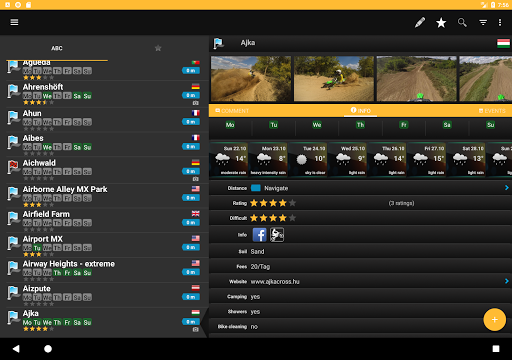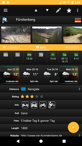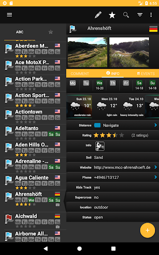 Useful information are included, soil type, length, fees an opening hours (if provided from track owner) as well.