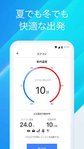 アプリからエアコンを起動して、出発前に車内を快適な温度に調整できます。スケジュール設定で事前予約も可能です。