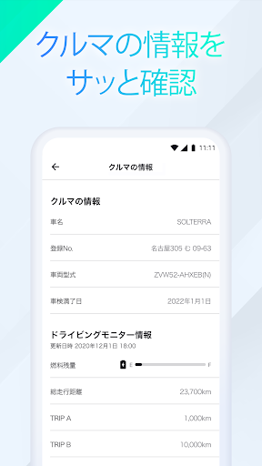 燃料残量や走行距離などクルマの状態を確認いただけます。