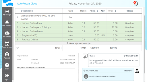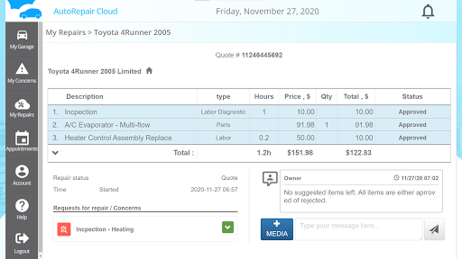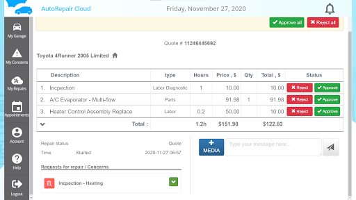 – it makes one workflow with repair shops: approve process, chat recording, image attachment