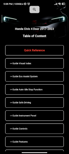Honda Civic User / Owner Manual, If you are an owner of an Honda Civic, this app will help you a lot in your day-to-day use No need to go through a traditional paper book, handbook Glance through this digital version of Honda Civic to resolve your issues and all the how-to’s, and nitty-gritty When and which oil to use and a lot more Download and refer to it as many times you want without the risk of losing it