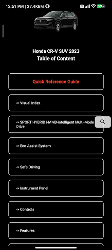 Honda CRV User Manual, If you are an owner of an Honda CRV, this app will help you a lot in your day-to-day use No need to go through a traditional paper book, handbook Glance through this digital version of Honda CRV to resolve your issues and all the how-to’s, and nitty-gritty When and which oil to use and a lot more Download and refer to it as many times you want without the risk of losing it